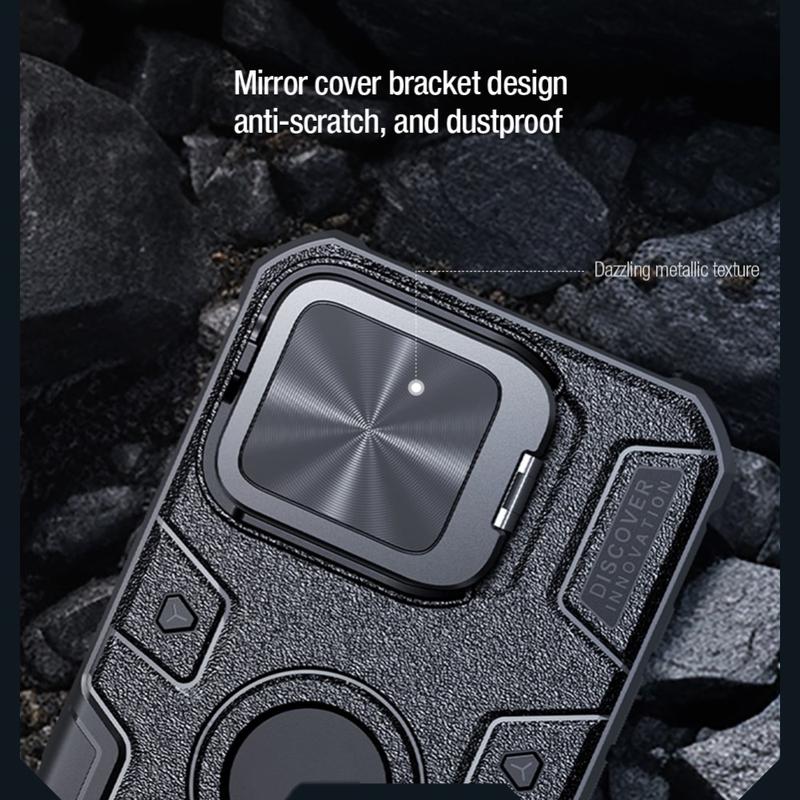 Das Nillkin CamShield Armor Prop Case für das iPhone 16 Pro Max bietet mit seiner robusten PC- und TPU-Konstruktion hervorragenden Schutz. Es verfügt über eine verschiebbare Kameralinsenabdeckung, um Ihre Kamera vor Kratzern und Staub zu schützen. Diese Hülle ist außerdem MagSafe-kompatibel und ermöglicht drahtloses Aufladen und die Befestigung von MagSafe-Zubehör. Dank des stabilen Ständers können Sie die Kamera freihändig bedienen. Das schlanke Design verleiht Ihrem iPhone 16 Pro Max einen eleganten und funktionalen Touch.