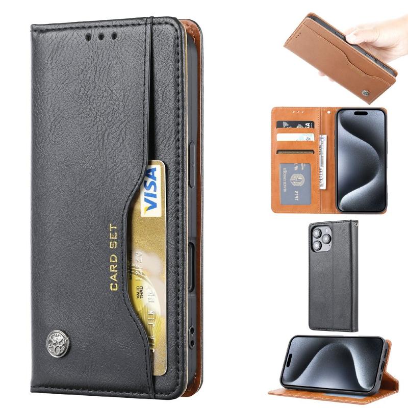 • Kartenset Wallet Hülle für iPhone 16 Pro - Magnetischer Verschluss, mehrere Kartenfächer, Kickstand