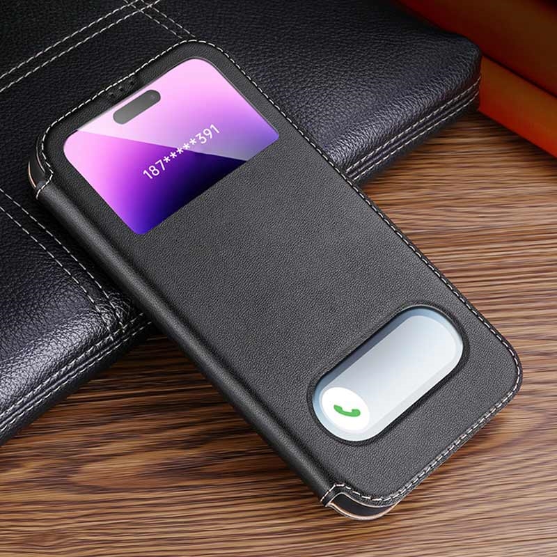 Dual View Flip Lederhülle für iPhone 16 Pro Max