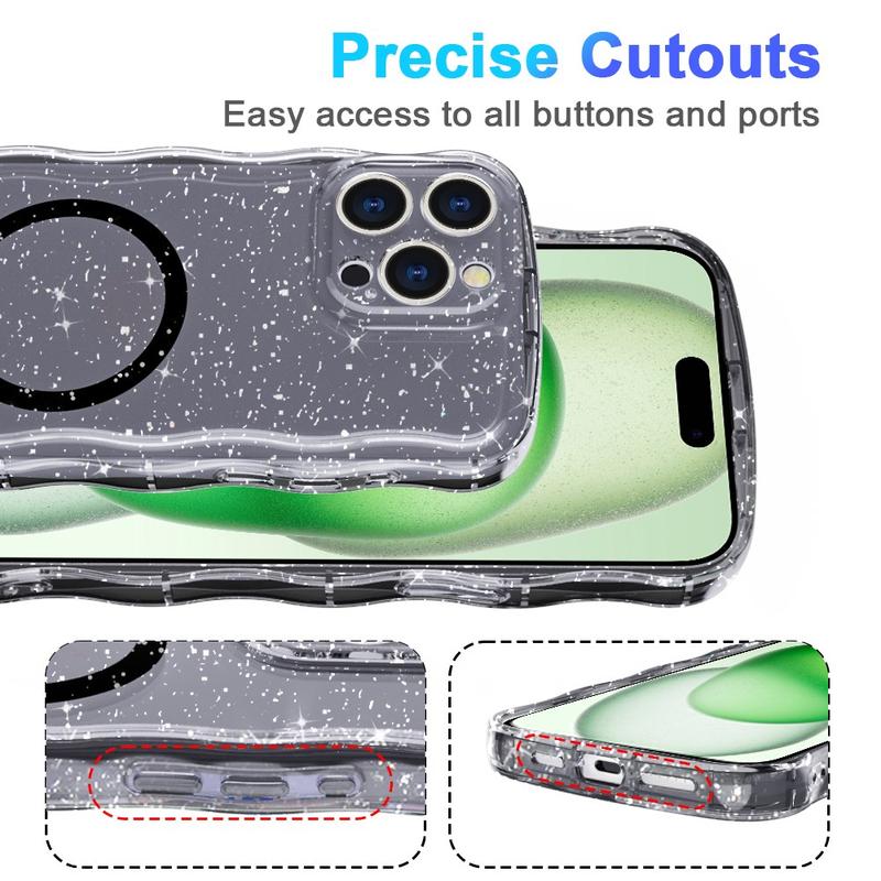 • Wave-Edge Laser Glitter MagSafe TPU Hülle für iPhone 16 Pro