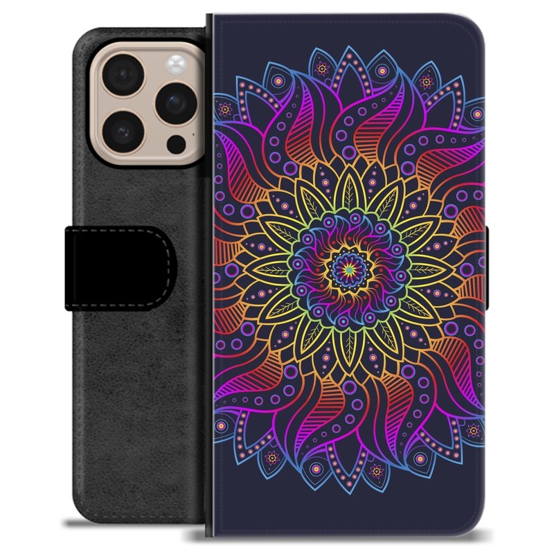 iPhone 16 Pro Max Premium Schutzhülle mit Geldbörse - Buntes Mandala