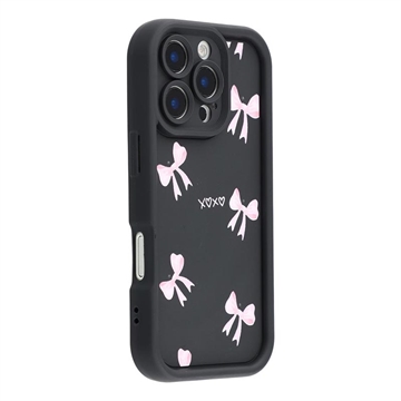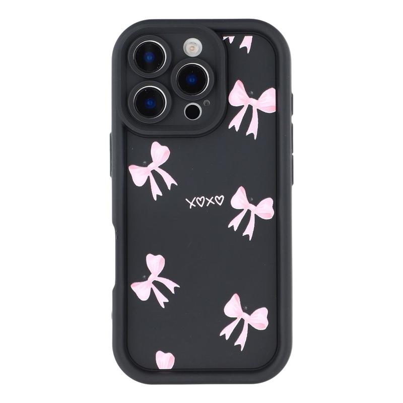 iPhone 16 Pro Stilvolle stoßfest TPU-Hülle mit erhöhten Kanten - Schwarz / Schleife