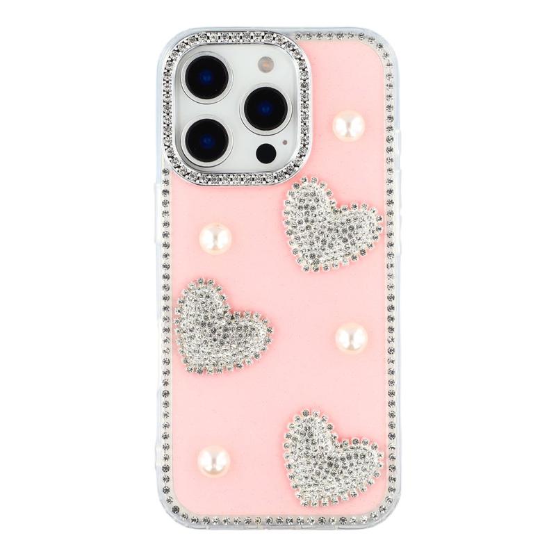 iPhone 16 Pro Max Glitzernde Liebe und Perle Hybridhülle - Rosa
