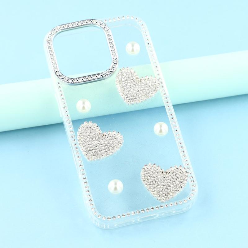 Diese iPhone 16 Pro Hülle kombiniert zuverlässigen Schutz im Alltag mit glamourösem Stil. Mit schimmernden Strasssteinen an den Rändern und funkelnden Perlenherzen auf der Rückseite verwandelt sie dein iPhone 16 Pro in ein modisches Accessoire und schützt es gleichzeitig vor Kratzern und Stößen.
