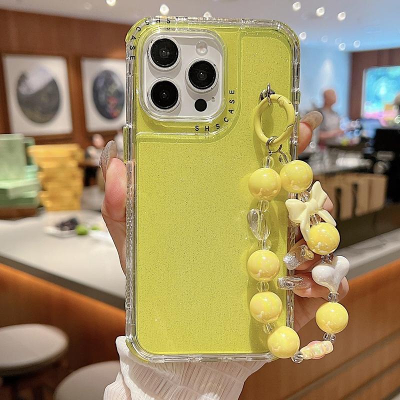 Glitter Stoßfestes Hybrid Hülle mit Handgelenkschlaufe für iPhone 16 Pro - PC + TPU Schutzhülle