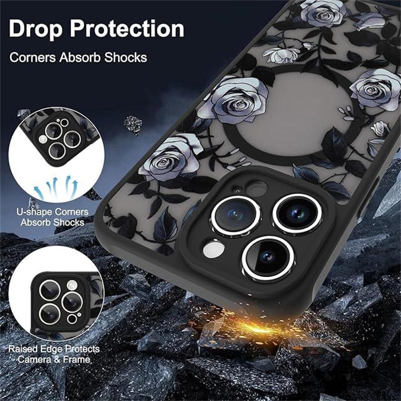 Bringen Sie zeitlose Eleganz auf Ihr iPhone mit dem Rose Flower Pattern MagSafe Case für iPhone 16 Pro Max. Diese Hülle kombiniert Schönheit und Schutz und bietet einen von der Vintage-Zeit inspirierten Rosenprint, der Ihrem Gerät Raffinesse verleiht und es gleichzeitig schützt. Die Hülle besteht aus einer robusten Mischung aus hartem PC und flexiblem TPU und bietet hervorragende Stoßdämpfung und Stoßfestigkeit. Der integrierte Magnetring gewährleistet volle MagSafe-Kompatibilität für sichere Befestigung und effizientes kabelloses Laden.