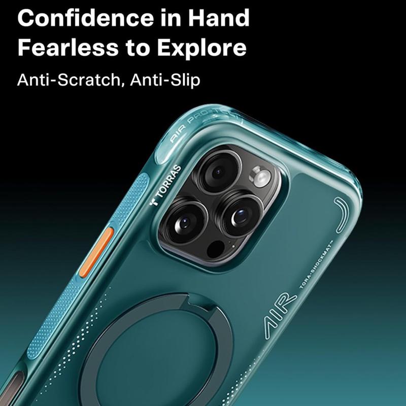 Das Torras Ostand Q3 Air MagSafe Case für das iPhone 16 Pro Max kombiniert moderne Ästhetik mit fortschrittlichem Schutz. Gefertigt aus hochwertigen TPU- und PC-Materialien, bietet es ein schlankes, elegantes Profil und gleichzeitig einen sicheren und komfortablen Halt.