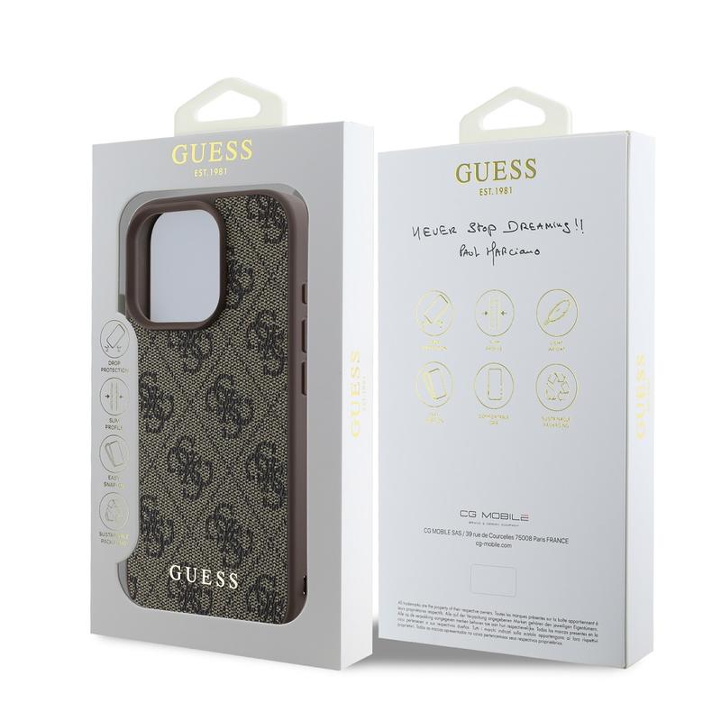 Die Guess 4G Charms Collection Hybridtasche hebt sich durch ihre Eleganz und ihr einzigartiges Design von anderen Taschen ab. Mit dem legendären goldenen Guess-Logo und dem 4G-Muster hebt diese Hybrid-Hülle den Stil und die Mode auf ein neues Niveau und lässt dein iPhone 16 Pro fantastisch aussehen. Für alle, die Wert auf Stil und Eleganz legen, ist diese Hybridhülle ein Muss.