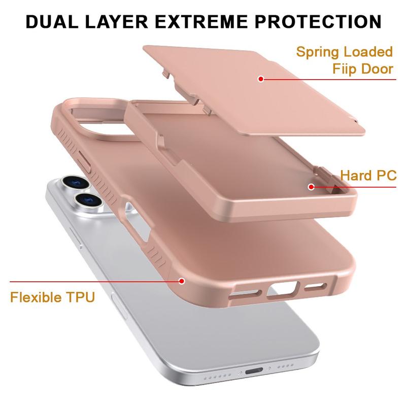 • Hybrid Hülle für iPhone 16 Pro mit Verstecktem Spiegel & Kartenfach