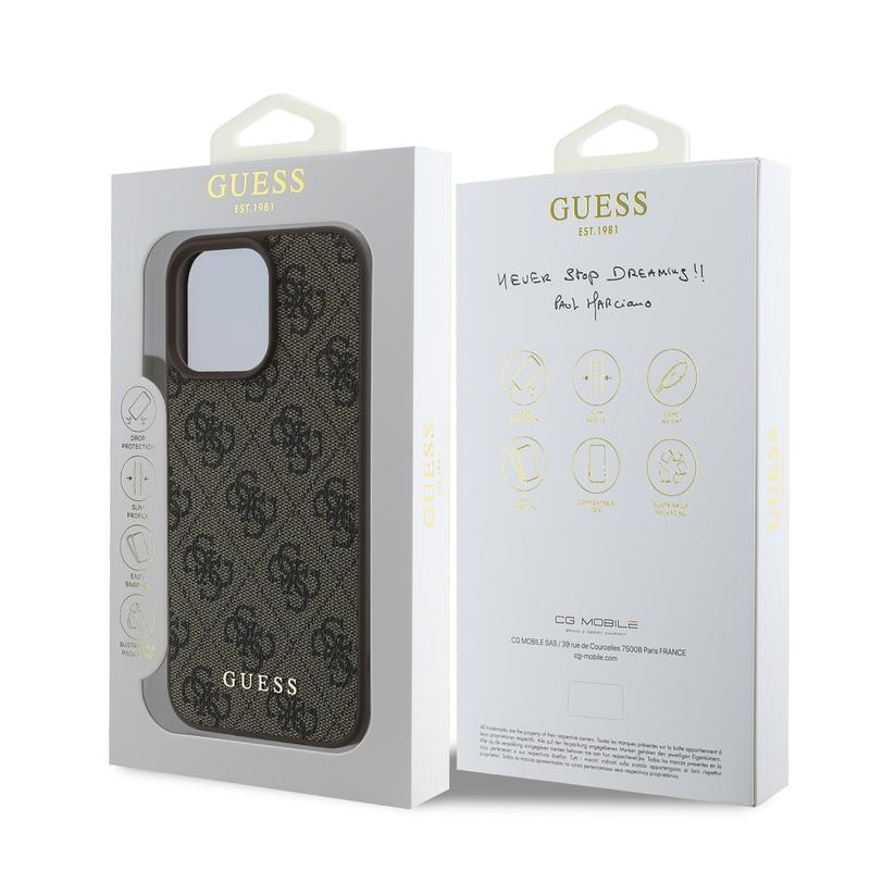 Die Guess 4G Charms Collection Hybridtasche hebt sich durch ihre Eleganz und ihr einzigartiges Design von anderen Taschen ab. Mit dem legendären goldenen Guess-Logo und dem 4G-Muster hebt diese Hybrid-Hülle den Stil und die Mode auf ein neues Niveau und lässt dein iPhone 16 Pro Max fantastisch aussehen. Für alle, die Wert auf Stil und Eleganz legen, ist diese Hybridhülle ein Muss.