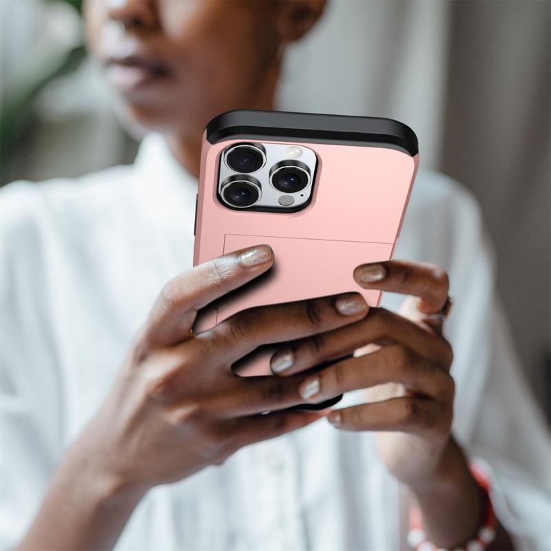 iPhone 16 Pro Max Hybrid-Hülle mit Verschiebbarem Kartensteckplatz - Roségold