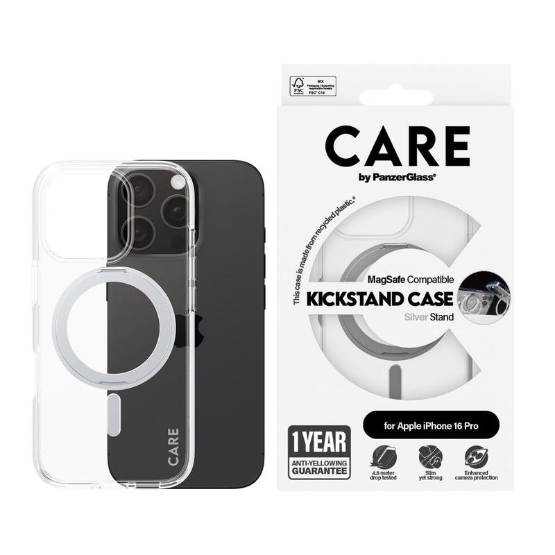 • Care by PanzerGlass Kickstand Hülle für iPhone 16 Pro - MagSafe Kompatibel
