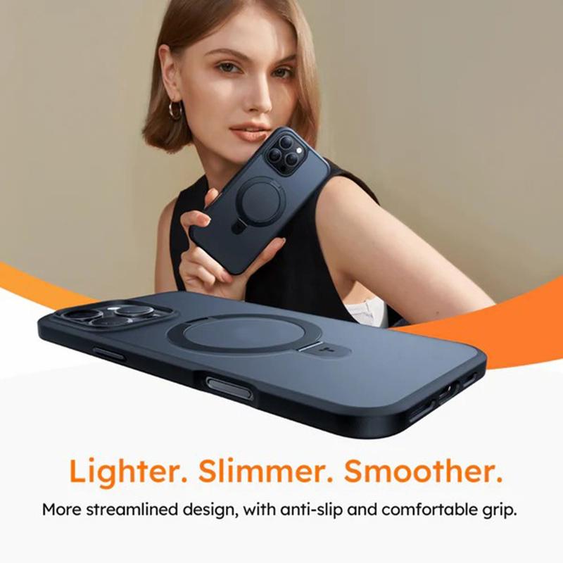 - Reisebegleiter: Genießen Sie auf langen Flügen oder Zugfahrten den Komfort eines Kickstandes, der es Ihnen erleichtert, Inhalte freihändig zu betrachten, während Ihr Telefon geschützt bleibt.