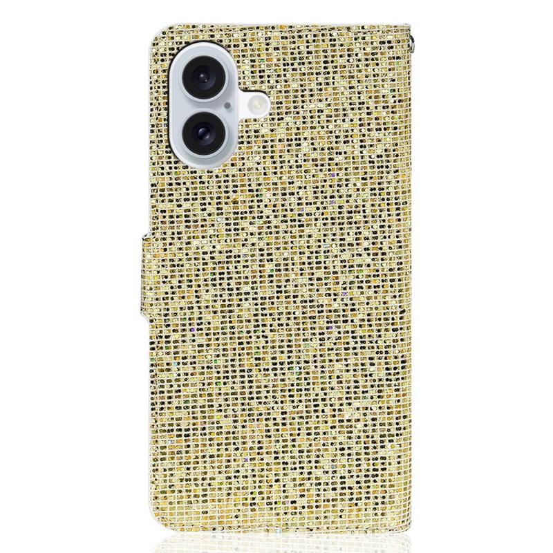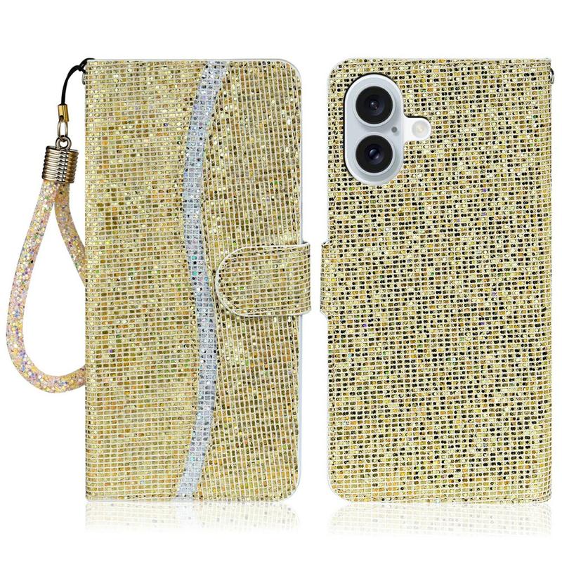 iPhone 16 Stilvolle Glitzer Wallet Hülle - Gold