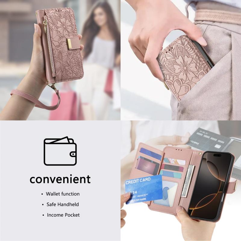 Im Gegensatz zu gewöhnlichen iPhone 16-Hüllen vereint diese Hülle Schutz, Organisation und Eleganz in einem. Der florale Aufdruck verleiht ihr einen stilvollen Touch, während die Reißverschlusstasche und die Handschlaufe unübertroffenen Komfort im Alltag und auf Reisen bieten.