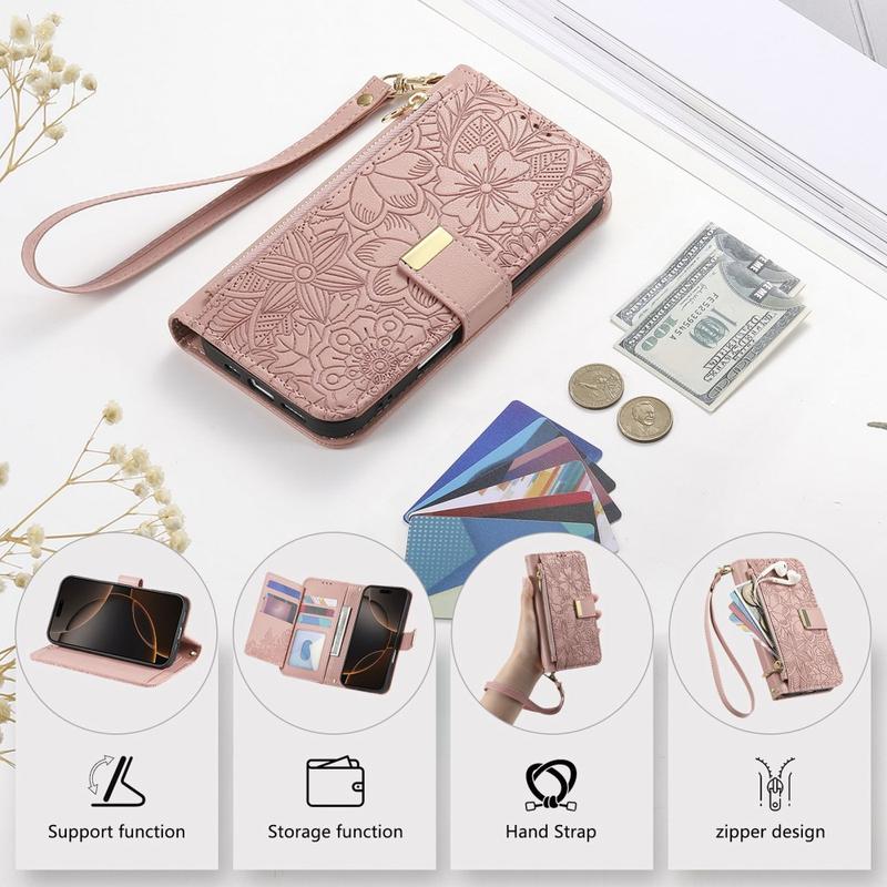 Brieftaschentaschen erfreuen sich zunehmender Beliebtheit, da sie eine umweltfreundliche Alternative zum Tragen einer Brieftasche und einer iPhone 16 Tasche darstellen. Das florale Prägeverfahren wertet nicht nur das Aussehen auf, sondern stärkt auch die Polyurethan-Oberfläche und macht sie widerstandsfähiger gegen Kratzer.