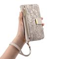 Wallet Hülle mit Blumen und Blattmuster mit Reißverschlusstasche & Handgelenkband für iPhone 16