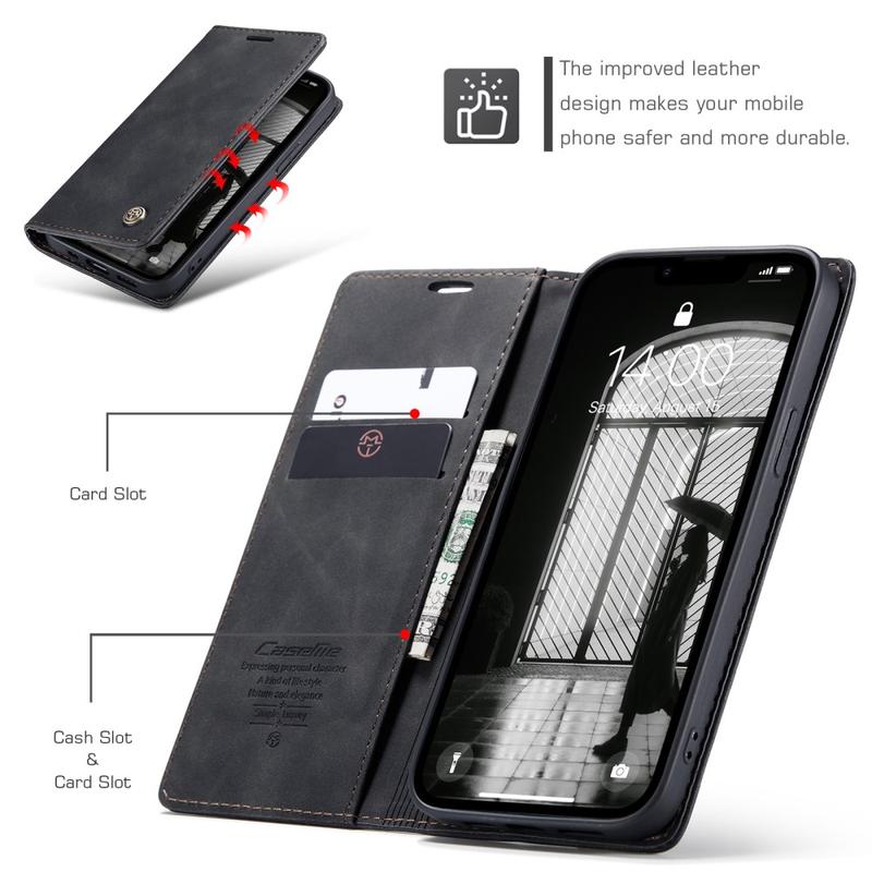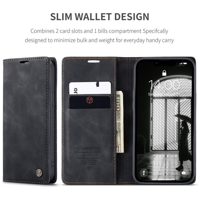 - Eingebaute Magnete halten die Caseme 013 Series Wallet-Hülle geschlossen