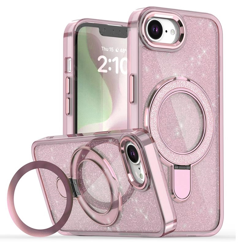 Glitter Hülle mit Kickstand für iPhone 16e - MagSafe kompatible TPU + PC Hybrid Kickstand Cover