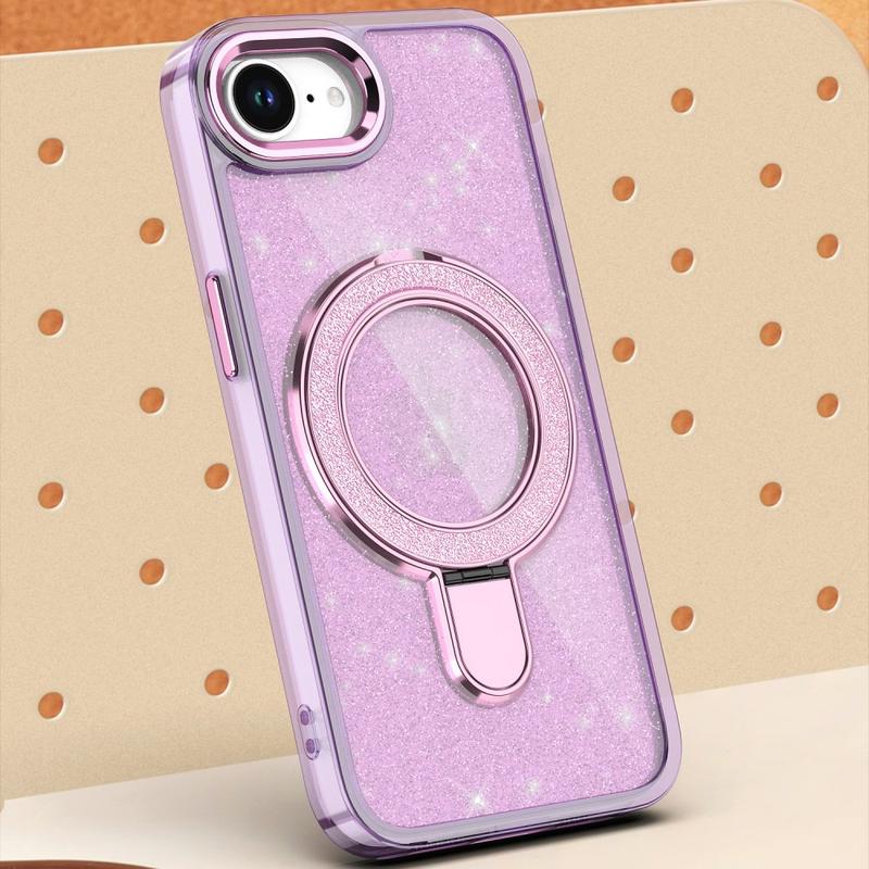 iPhone 16e Glitter Hybrid Hülle mit Kickstand - MagSafe-kompatibel - Lila