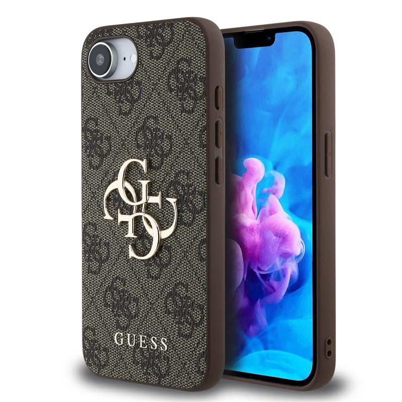 iPhone 16e Guess 4G Big Metal Logo Hybrid Hülle - Braun