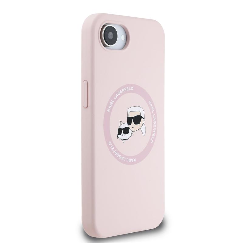 iPhone 16e Karl Lagerfeld Karl and Choupette Flüssigkeit Silikon MagSafe Hülle - Rosa