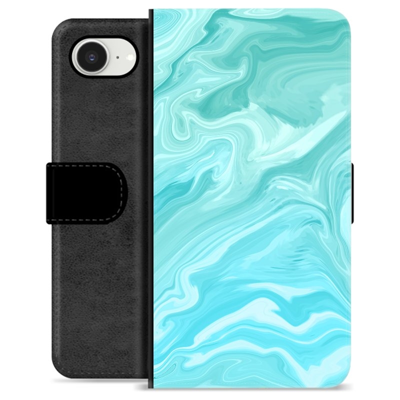 iPhone 16e Premium Schutzhülle mit Geldbörse - Blauer Marmor