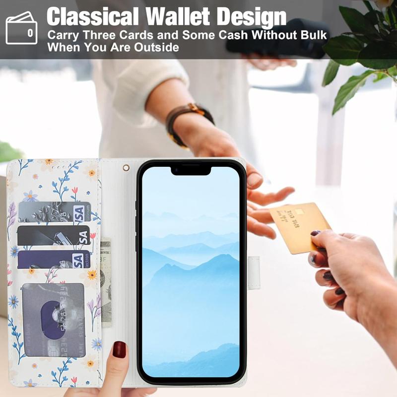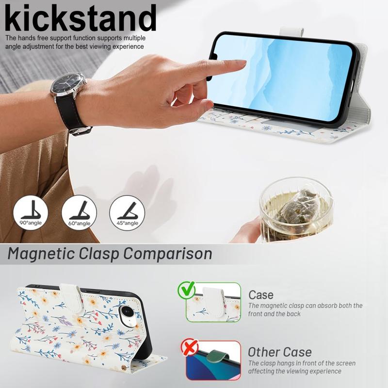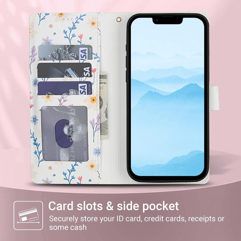 Rhombisches Blumen Wallet Hülle für iPhone 16e - mit Riemen und Kartenfächern