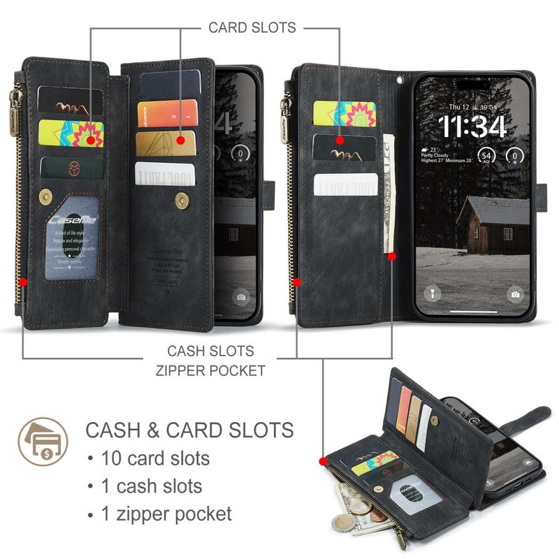 Die Caseme C30 multifunktionale Brieftaschenhülle für das iPhone Air bietet außergewöhnlichen Rundumschutz und ein exklusives, raffiniertes Design. Diese elegante Hülle besteht aus hochwertigem Polyurethan, verstärkt mit einer stoßfesten TPU-Innenhülle, die sich perfekt an Ihr iPhone Air anschmiegt. Die Caseme C30 Brieftasche ist mit zahlreichen Kartenfächern, einem großen Geldfach innen und einer Außentasche mit Reißverschluss ausgestattet, die alle durch einen sicheren Magnetverschluss geschützt sind.