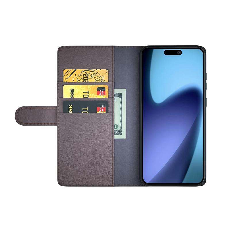 Eine hochwertige, anspruchsvolle Lederhülle für Ihr iPhone Air. Verleihen Sie Ihrem Telefon ein erstklassiges Aussehen und schützen Sie es gleichzeitig vor Kratzern und gewöhnlichen Beschädigungen. Diese multifunktionale Brieftasche aus weichem Leder hat Innenfächer für Karten und ein größeres Fach für Bargeld. Darüber hinaus verfügt das iPhone Air Etui aus echtem Leder über einen freihändigen Betrachtungsstand und einen vorderen Ausschnitt für Gespräche bei geschlossenem Etui.