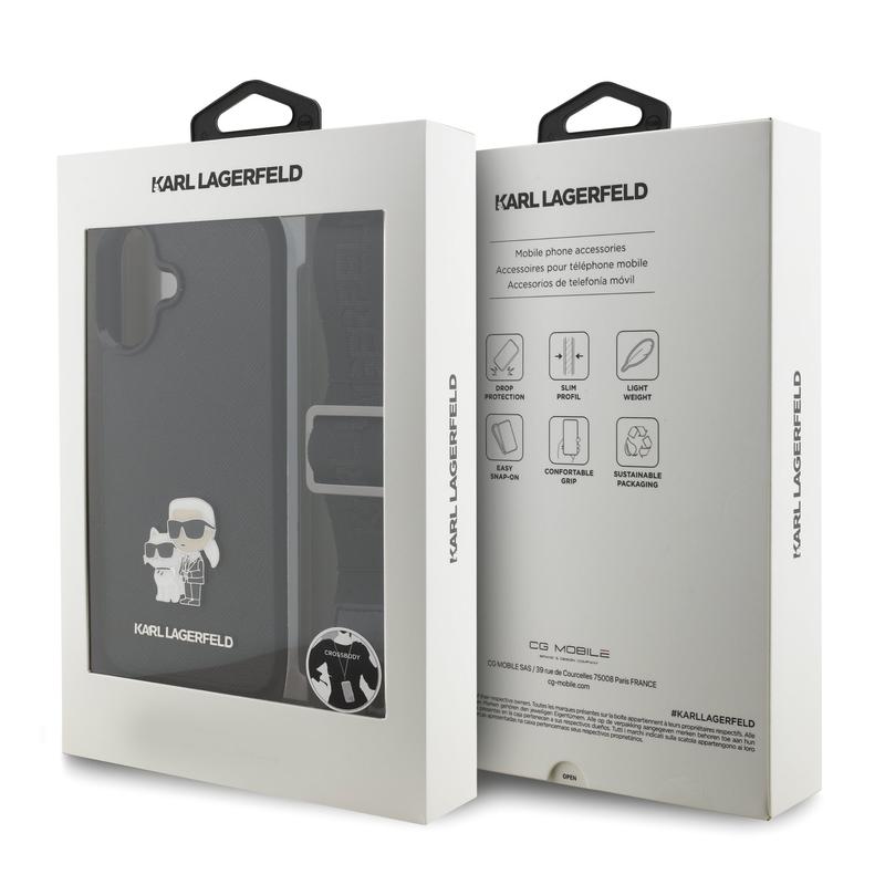 iPhone 17 Karl Lagerfeld Saffiano Crossbody Metal Karl & Choupette Hülle - Schwarz