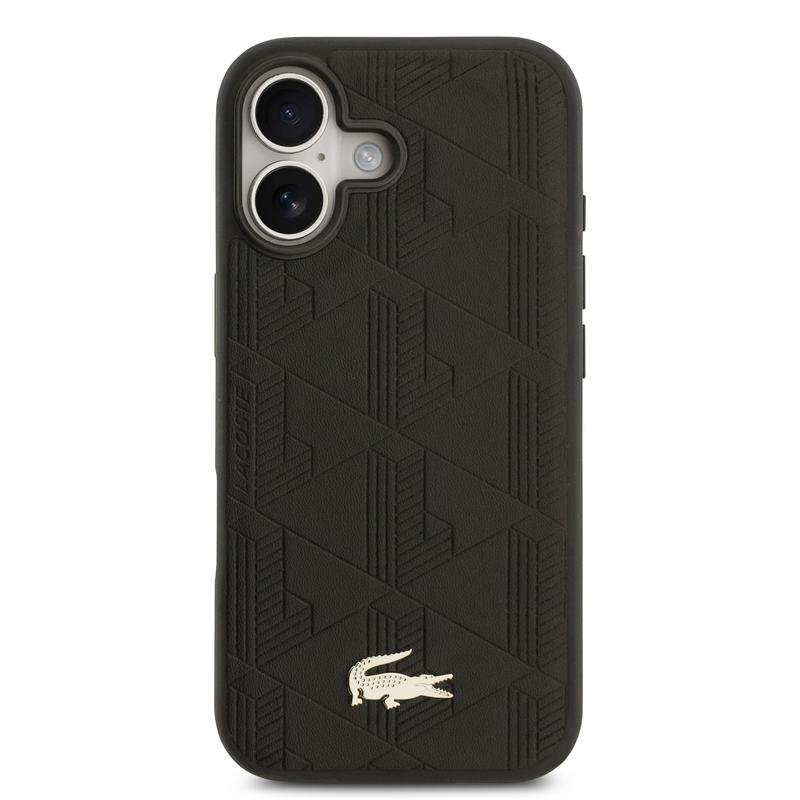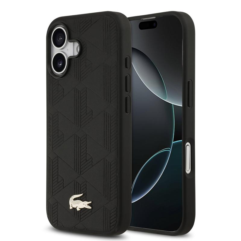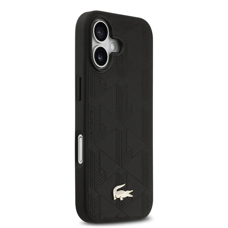 iPhone 17 Lacoste Monogramme Gold Logo Hülle - MagSafe-kompatibel - Schwarz