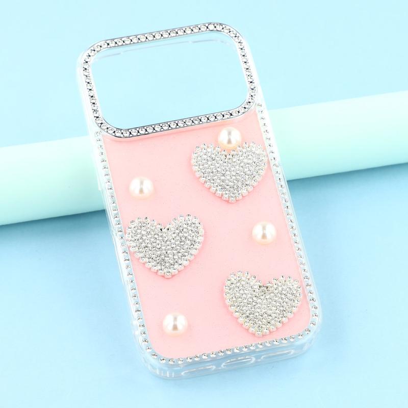 iPhone 17 Pro Glitzernde Liebe und Perle Hybridhülle - Rosa