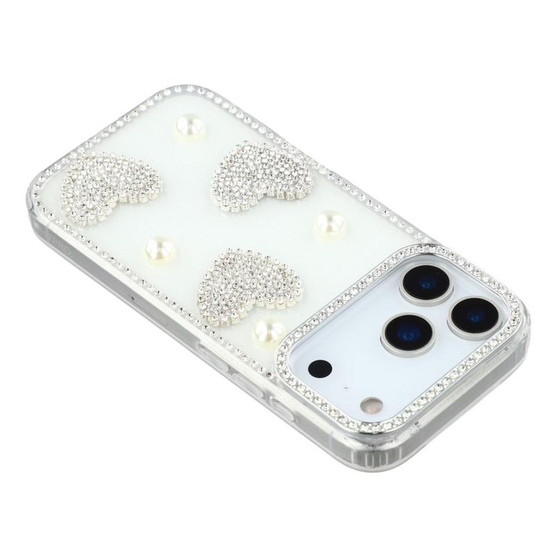 Diese iPhone 17 Pro Hülle kombiniert zuverlässigen Schutz im Alltag mit glamourösem Stil. Mit schimmernden Strasssteinen an den Rändern und funkelnden Perlenherzen auf der Rückseite verwandelt sie dein iPhone 17 Pro in ein modisches Accessoire und schützt es gleichzeitig vor Kratzern und Stößen.