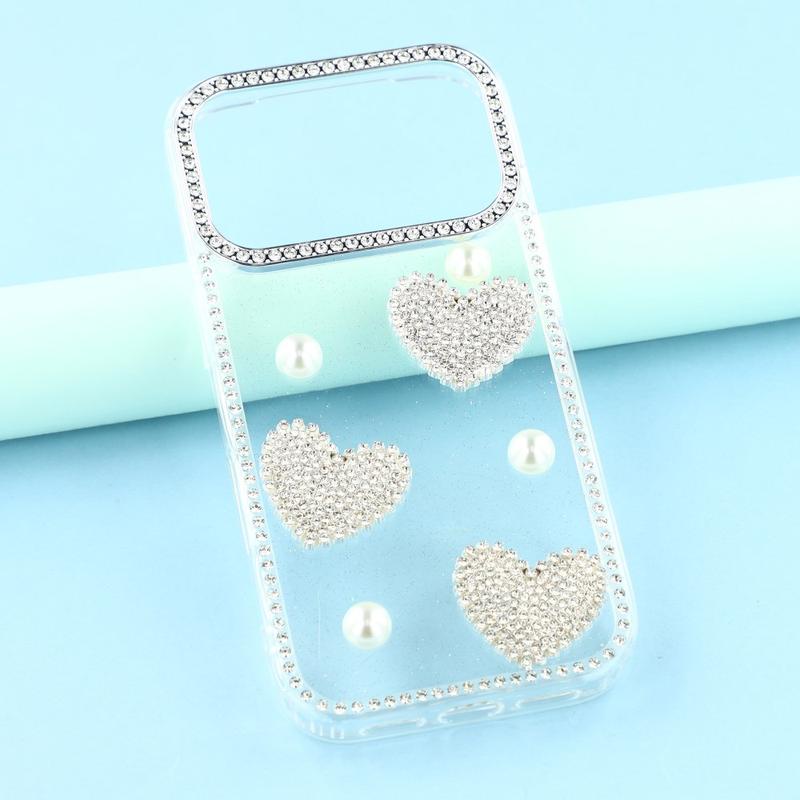 Diese iPhone 17 Pro Max Hülle kombiniert zuverlässigen Schutz im Alltag mit glamourösem Stil. Mit schimmernden Strasssteinen an den Rändern und funkelnden Perlenherzen auf der Rückseite verwandelt sie dein iPhone 17 Pro Max in ein modisches Accessoire und schützt es gleichzeitig vor Kratzern und Stößen.