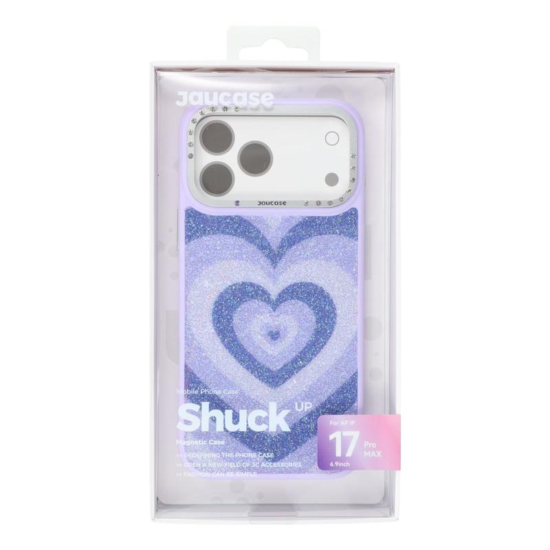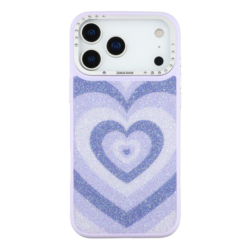 Jaucase Magnetische Hybridhülle mit Herzmuster für iPhone 17 Pro Max - Polyurethan + TPU + PC mit Rhinestone Lens Rahmen
