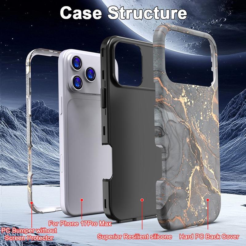 • iPhone 17 Pro Max Luxus Marmor Hybrid Hülle - Stilvolle PC und TPU stoßfeste Handyhülle mit Kameraschutz