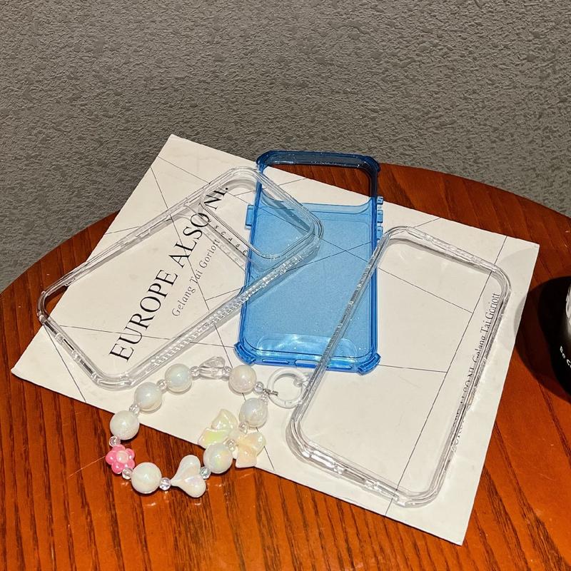 iPhone 17 Pro Max Glitter Stoßfestes Hybrid Hülle mit Handgelenkschlaufe - Blau
