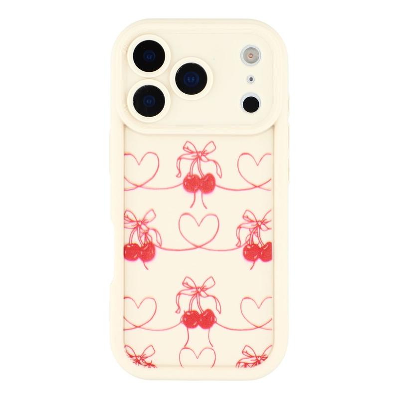 iPhone 17 Pro Max Stilvolle stoßfeste TPU-Hülle mit erhöhten Kanten - Weiß / Kirschen mit Schleife