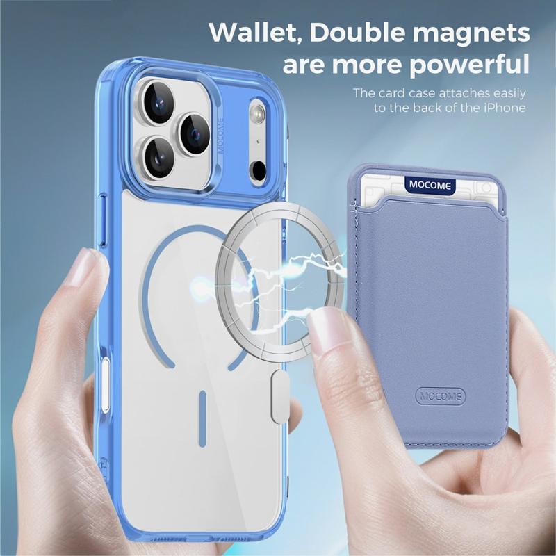 Schützen Sie Ihr Gerät stilvoll mit dem MagSafe Case für das iPhone 17 Pro Max, das sowohl auf Haltbarkeit als auch auf Komfort ausgelegt ist. Diese Hülle besteht aus einer Hybridkonstruktion aus TPU und PC und kombiniert Flexibilität mit Stärke, um Ihr Gerät vor Stürzen, Kratzern und täglichem Verschleiß zu schützen. Dank des integrierten Magnetrings ist sie vollständig kompatibel mit MagSafe-Ladegeräten und magnetischen Autohalterungen, während die abnehmbare, schlanke Kartentasche mit zwei Magneten das Mitführen von 1-2 Karten ermöglicht, ohne dass sie zu groß wird. Die kristallklare Oberfläche lässt Ihr iPhone 17 Pro Max elegant und originell aussehen, während verstärkte Ränder und erhöhte Einfassungen einen Rundumschutz für Ihr Display und Ihre Kamera gewährleisten.