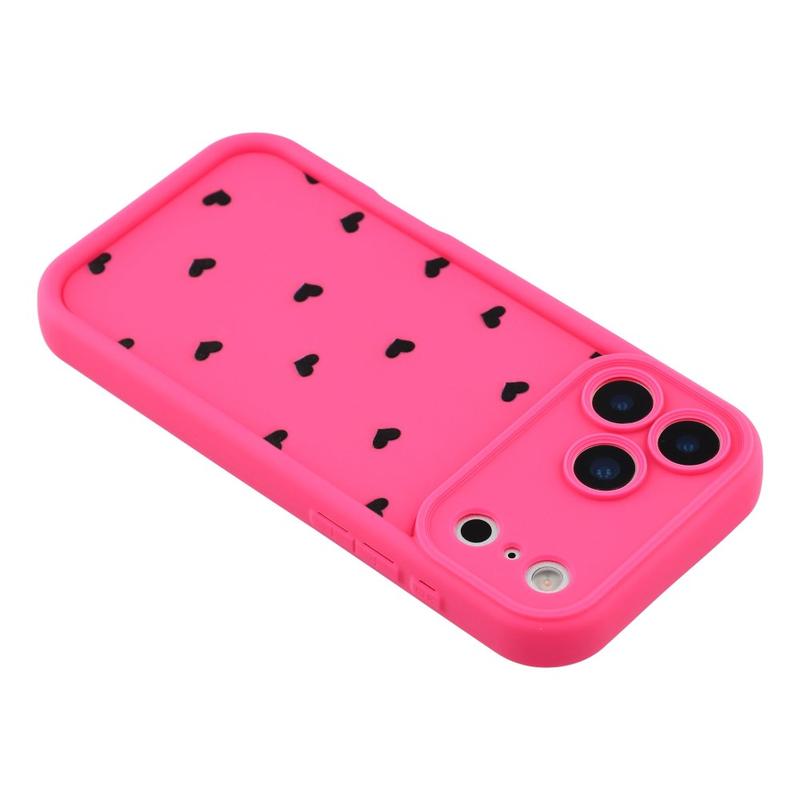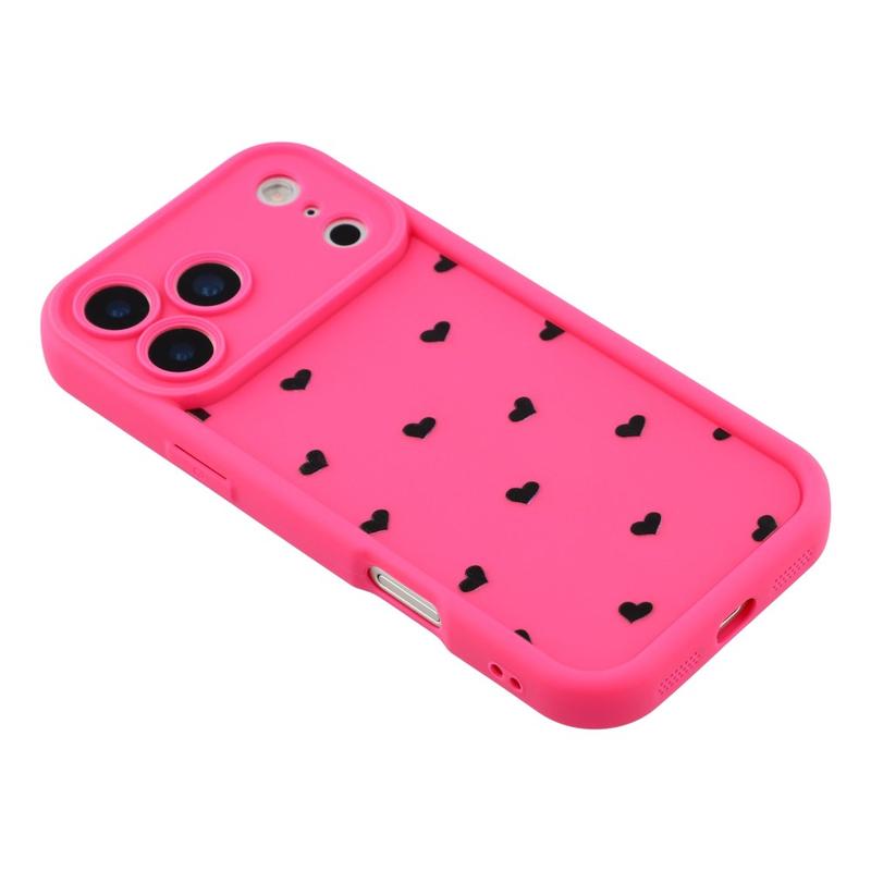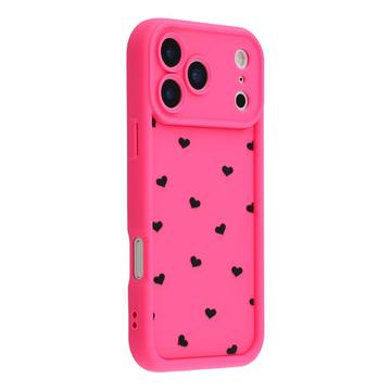 iPhone 17 Pro Herz-Muster stoßfest TPU Hülle mit erhöhten Kanten - Hot Pink