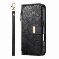 Wallet Hülle mit Blumen und Blattmuster mit Reißverschlusstasche & Handgelenkband für iPhone 17 Pro