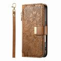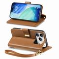 Wallet Hülle mit Blumen und Blattmuster mit Reißverschlusstasche & Handgelenkband für iPhone 17 Pro Max