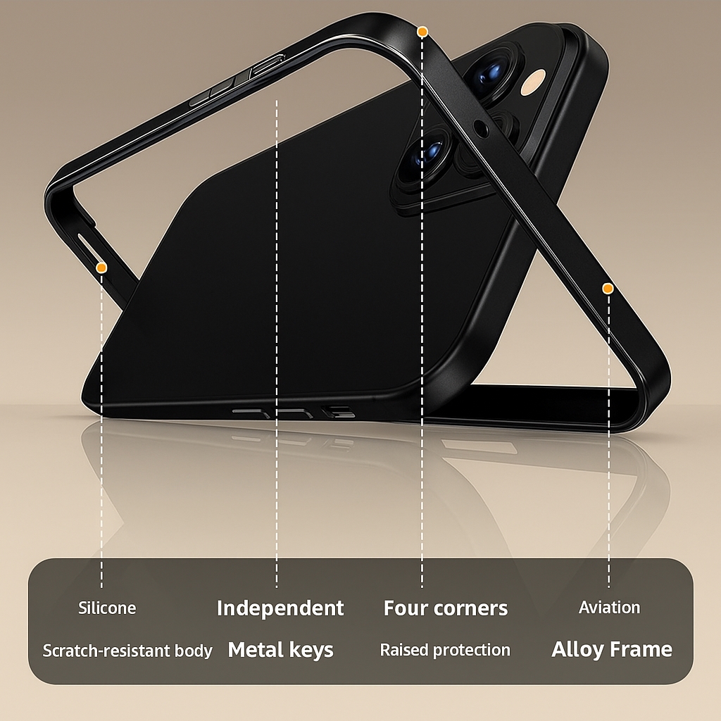 Halte dein iPhone 17 Pro kühl und geschützt mit dem Hollow Heat Dissipation Case für iPhone 17 Pro. Dieser Bumper wurde für Gamer und Power-User entwickelt und verfügt über einen hohlen Metallrahmen, der die Wärme bei starker Beanspruchung effizient ableitet und eine optimale Geräteleistung gewährleistet. Die Hülle aus hochwertigem Silikon und langlebigem Metall kombiniert Flexibilität mit Stärke und bietet zuverlässigen Schutz bei Stürzen. Mit einer Dicke von nur 10 mm hat er ein schlankes Profil und fühlt sich an wie ein reines Telefon, während präzise Aussparungen den vollen Zugang zu allen Anschlüssen und Funktionen garantieren.