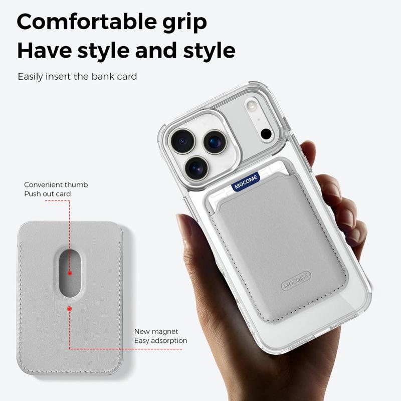 Schützen Sie Ihr Gerät stilvoll mit dem MagSafe Case für das iPhone 17 Pro, das sowohl auf Haltbarkeit als auch auf Komfort ausgelegt ist. Diese Hülle besteht aus einer Hybridkonstruktion aus TPU und PC und kombiniert Flexibilität mit Stärke, um Ihr Gerät vor Stürzen, Kratzern und täglichem Verschleiß zu schützen. Dank des integrierten Magnetrings ist sie vollständig kompatibel mit MagSafe-Ladegeräten und magnetischen Autohalterungen, während die abnehmbare, schlanke Kartentasche mit zwei Magneten das Mitführen von 1-2 Karten ermöglicht, ohne dass sie zu groß wird. Die kristallklare Oberfläche lässt Ihr iPhone 17 Pro elegant und originell aussehen, während verstärkte Ränder und erhöhte Einfassungen einen Rundumschutz für Ihr Display und Ihre Kamera gewährleisten.