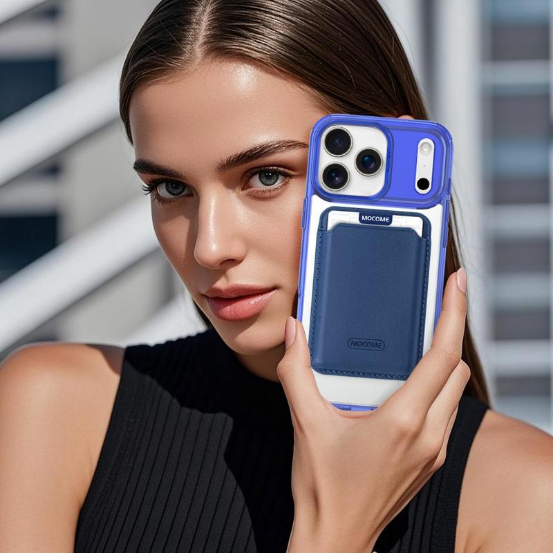 Schützen Sie Ihr Gerät stilvoll mit dem MagSafe Case für das iPhone 17 Pro, das sowohl auf Haltbarkeit als auch auf Komfort ausgelegt ist. Diese Hülle besteht aus einer Hybridkonstruktion aus TPU und PC und kombiniert Flexibilität mit Stärke, um Ihr Gerät vor Stürzen, Kratzern und täglichem Verschleiß zu schützen. Dank des integrierten Magnetrings ist sie vollständig kompatibel mit MagSafe-Ladegeräten und magnetischen Autohalterungen, während die abnehmbare, schlanke Kartentasche mit zwei Magneten das Mitführen von 1-2 Karten ermöglicht, ohne dass sie zu groß wird. Die kristallklare Oberfläche lässt Ihr iPhone 17 Pro elegant und originell aussehen, während verstärkte Ränder und erhöhte Einfassungen einen Rundumschutz für Ihr Display und Ihre Kamera gewährleisten.
