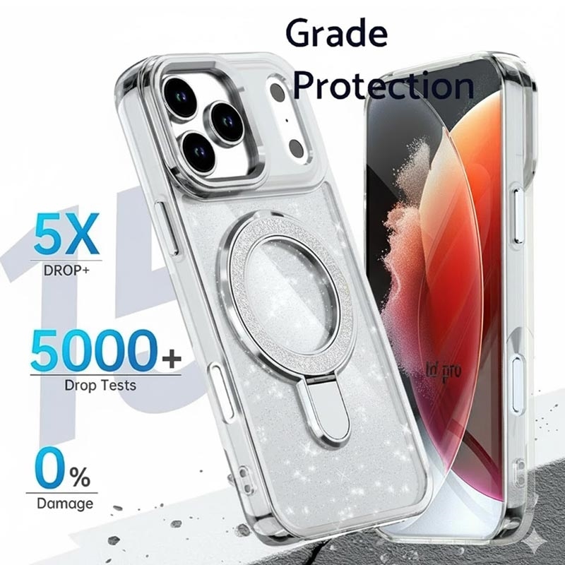 • Glitter Hülle mit Kickstand für iPhone 17 Pro - MagSafe kompatible TPU + PC Hybrid Kickstand Cover