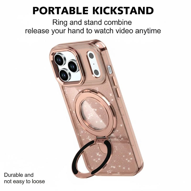 Glitter Hülle mit Kickstand für iPhone 17 Pro Max - MagSafe kompatible TPU + PC Hybrid Kickstand Cover