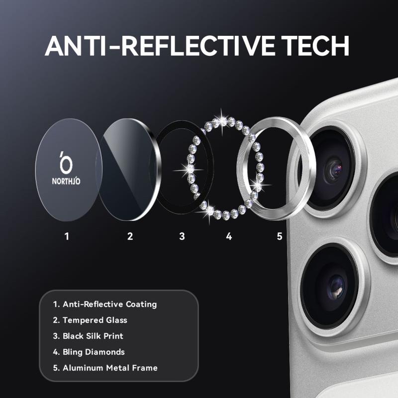 Verleihen Sie Ihrem iPhone 17 Pro, iPhone 17 Pro Max mit dem NORTHJO Kameraobjektivschutz Glanz und Schutz. Mit schimmernden Strasssteinen und präzisionsgeschliffenem, gehärtetem Glas schützt er Ihr Kameraobjektiv vor Kratzern, Staub und Stößen und verleiht ihm einen Hauch von Eleganz und Luxus.