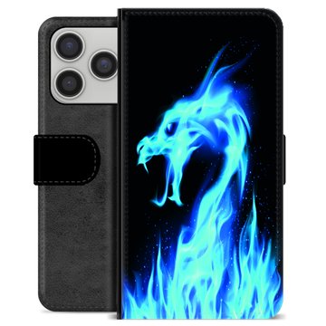 iPhone 17 Pro Premium Schutzhülle mit Geldbörse - Blauer Feuerdrache